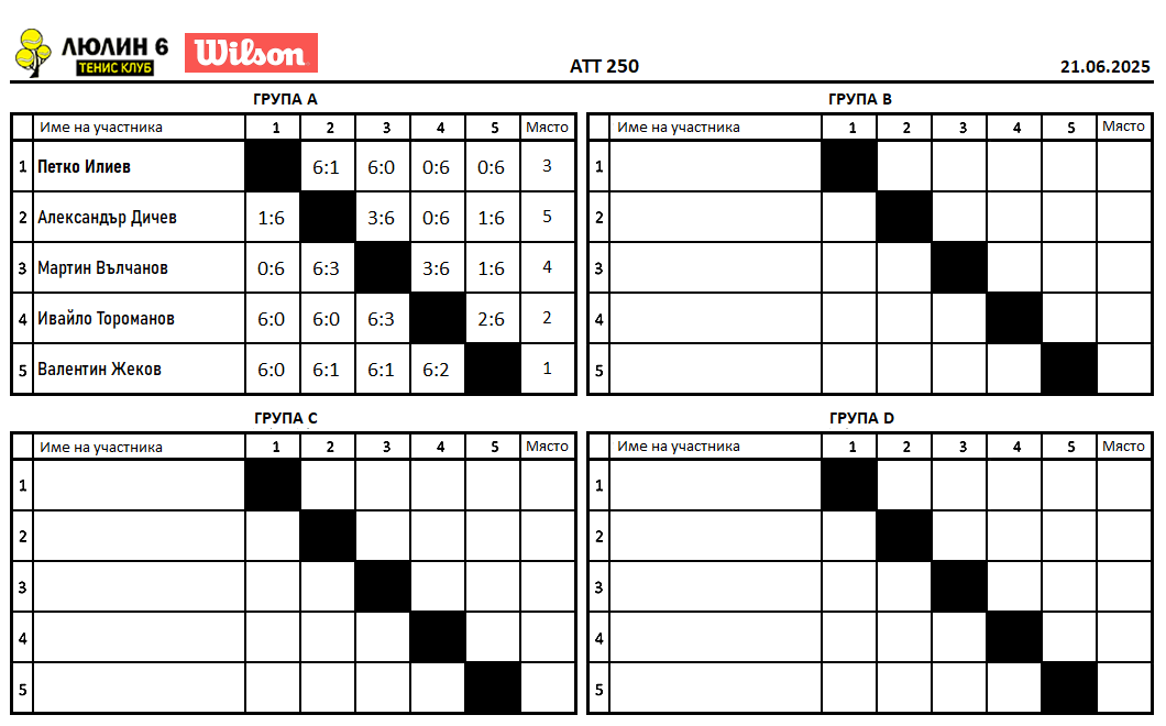 Любителски турнир сингъл ATT 1000 и ATT 250 21.06.2025г