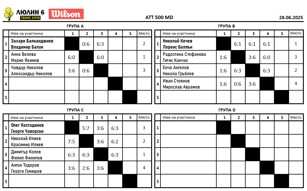 Любителски турнир двойки групи и програма 28.06.2025г