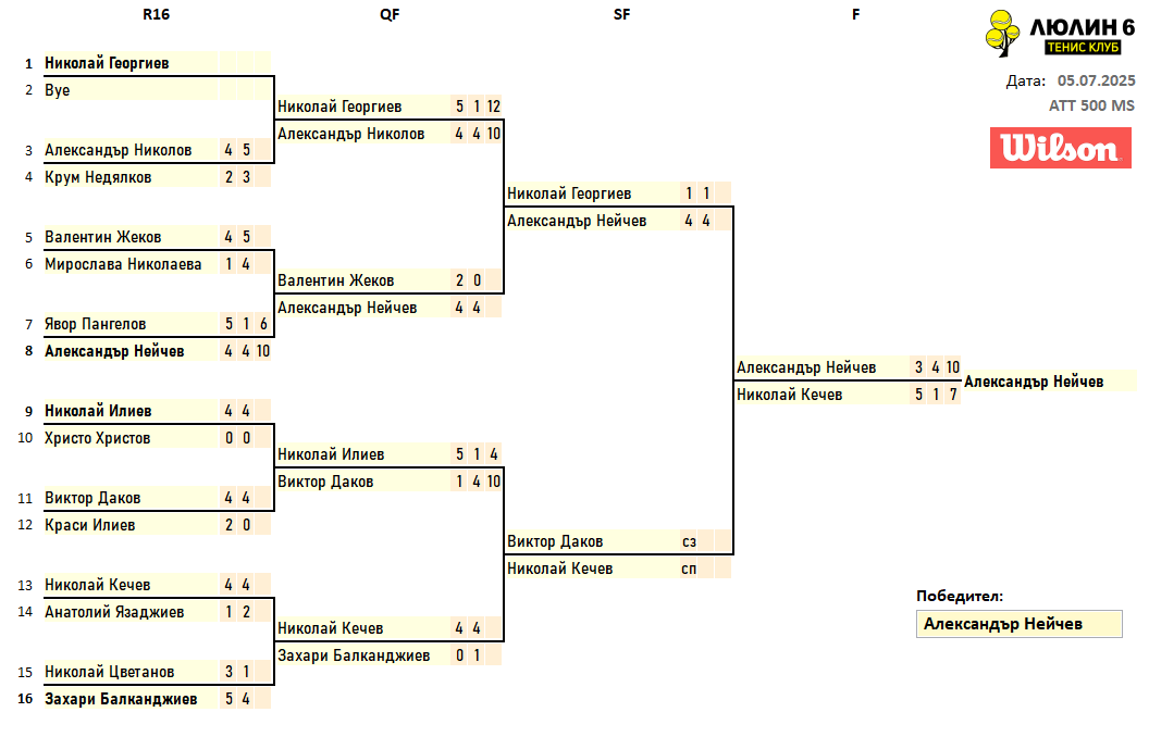 Любителски турнир сингъл ATT 500 схема и програма 05.07.2025г