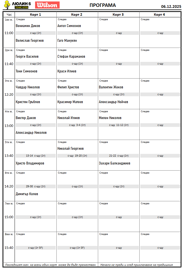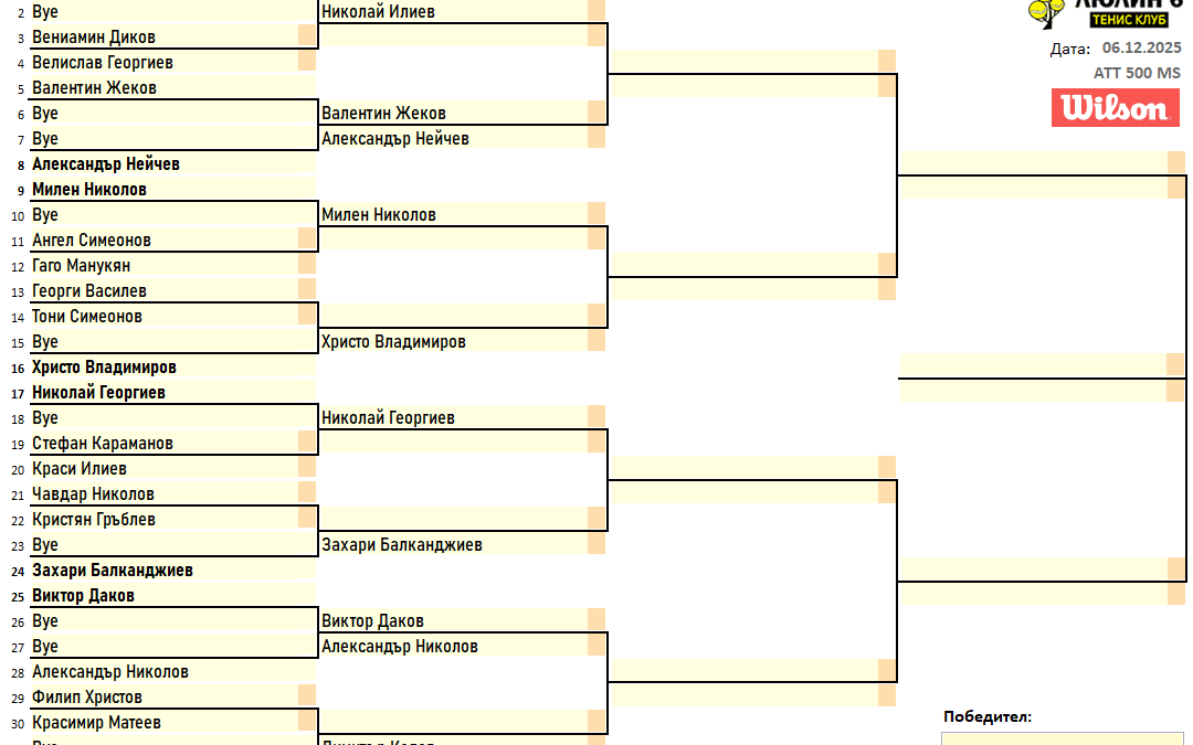 Резултати от любителски турнир двойки 29.11.2025г