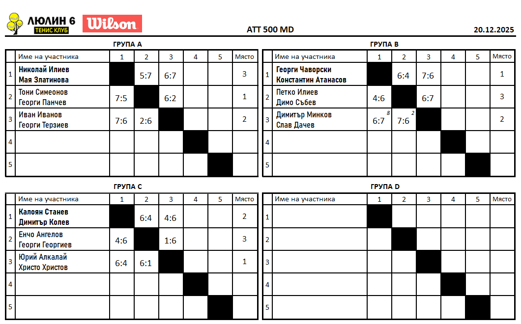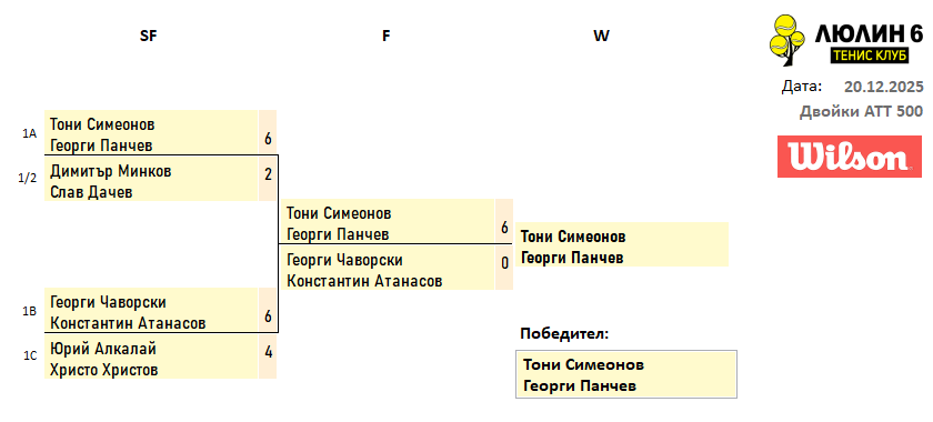 Резултати от любителски турнир сингъл 13.12.2025г
