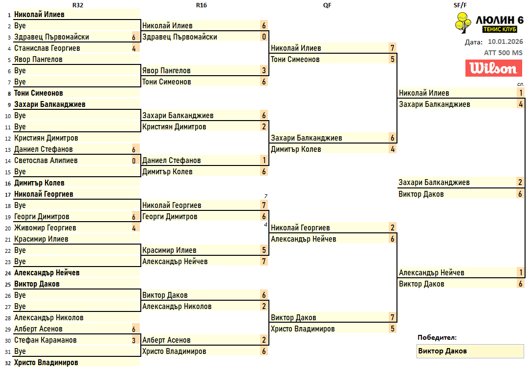 Резултати от любителски турнир сингъл 03.01.2026г
