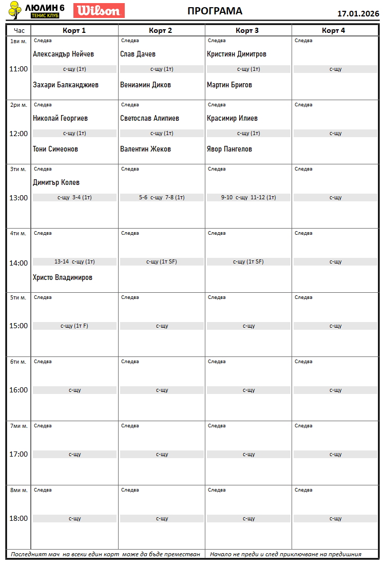 При 1:1 сета - шампионски тайбрек до 10 т.