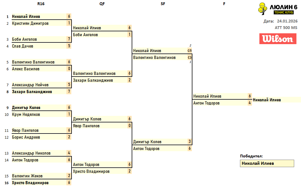 Резултати от любителски турнир сингъл 24.01.2026г