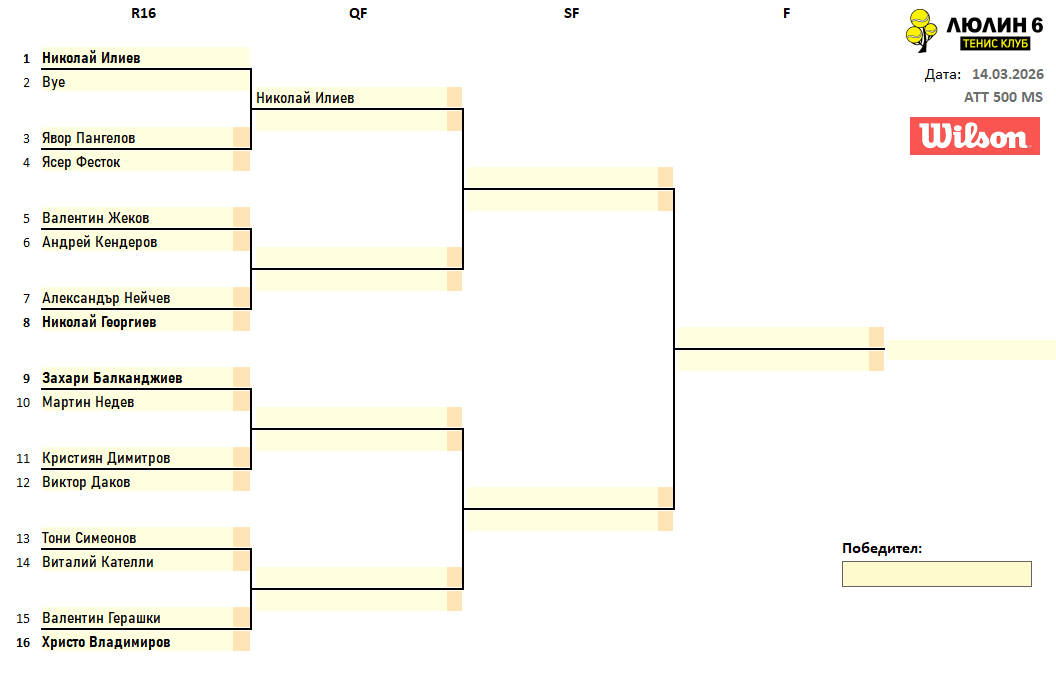 Любителски турнир сингъл ATT 500 схема и програма 14.03.2026г