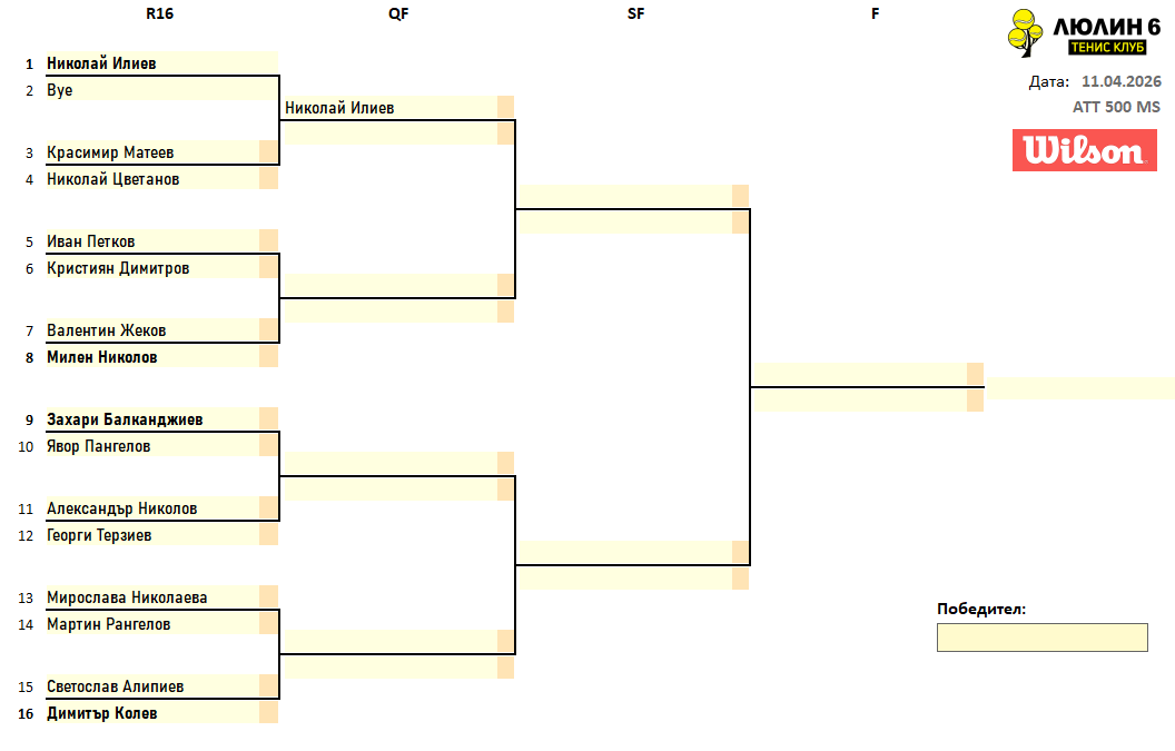 Любителски турнир сингъл ATT 500 11.04.2026г