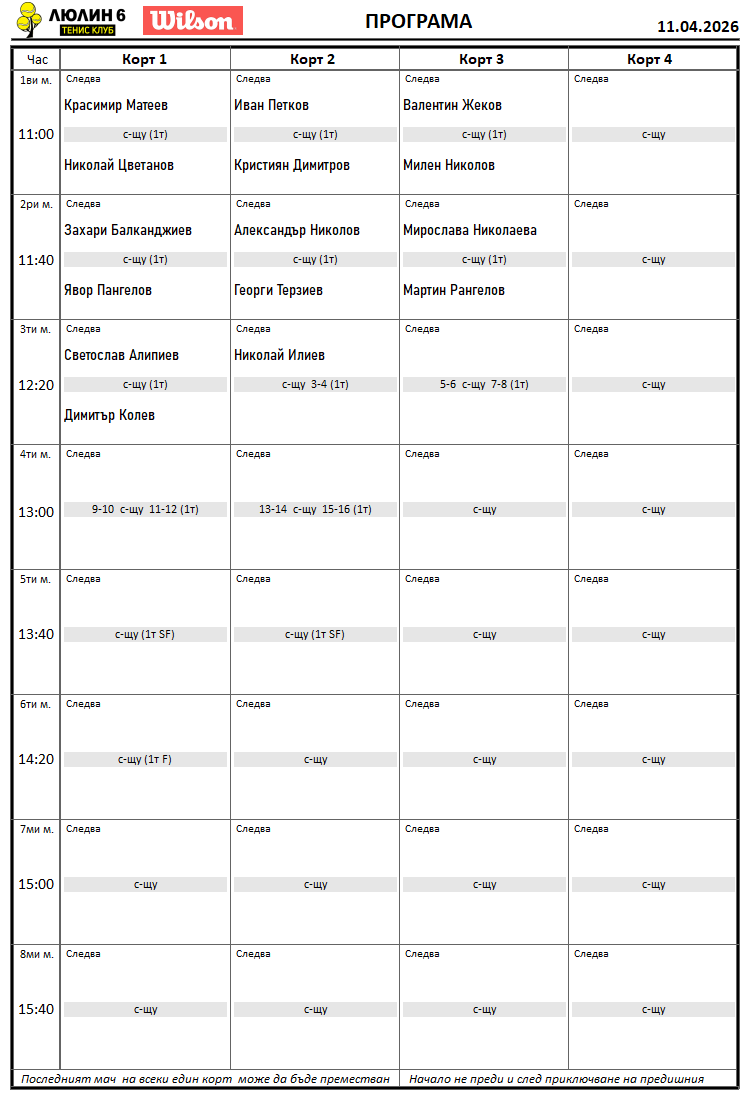 Резултати от любителски турнир сингъл 04.04.2026г