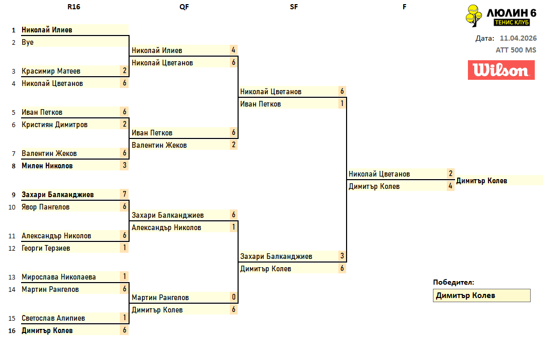 Резултати от любителски турнир сингъл 11.04.2026г
