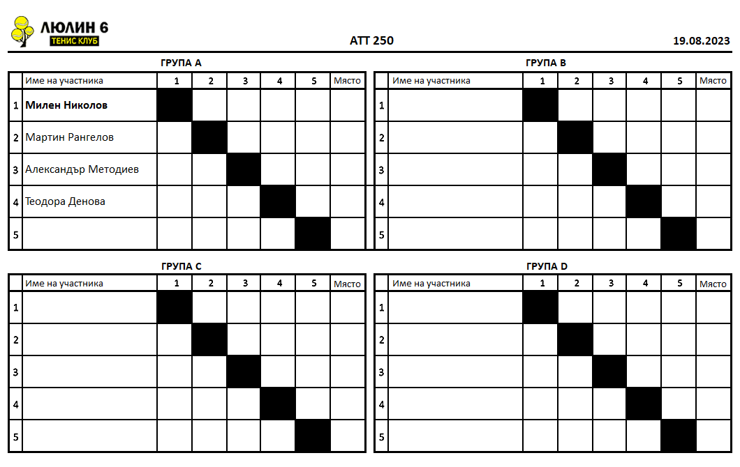 Резултати от любителски турнир сингъл ATT1000/250 12.08.2023г