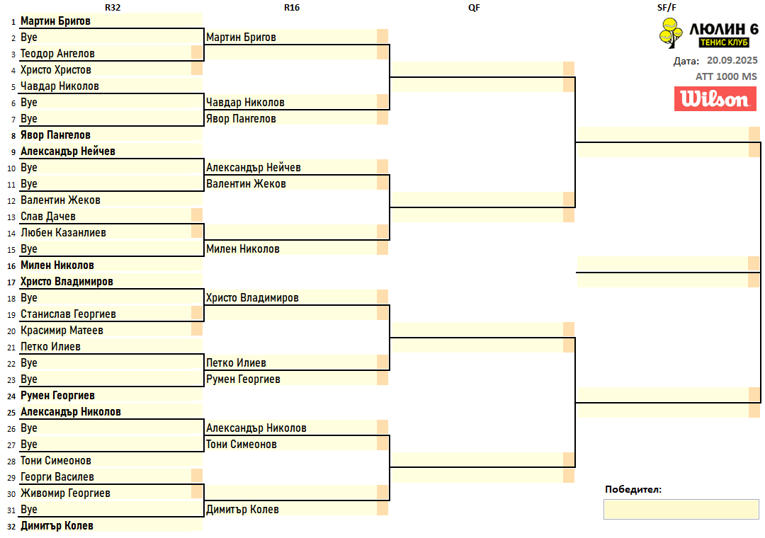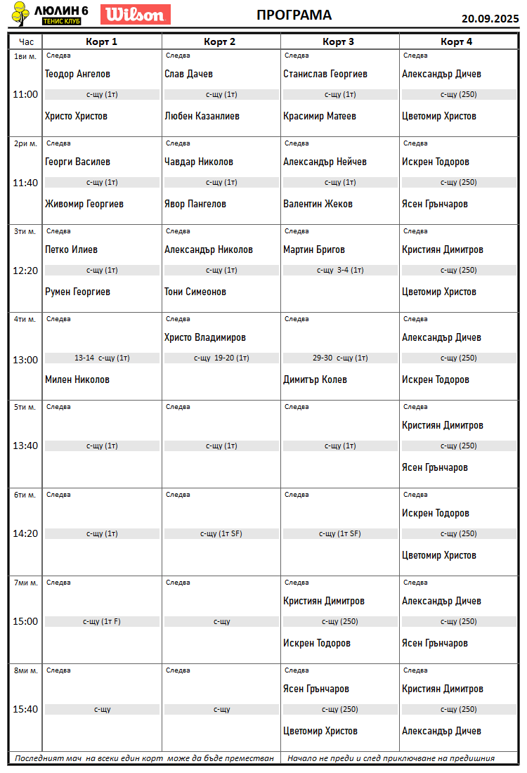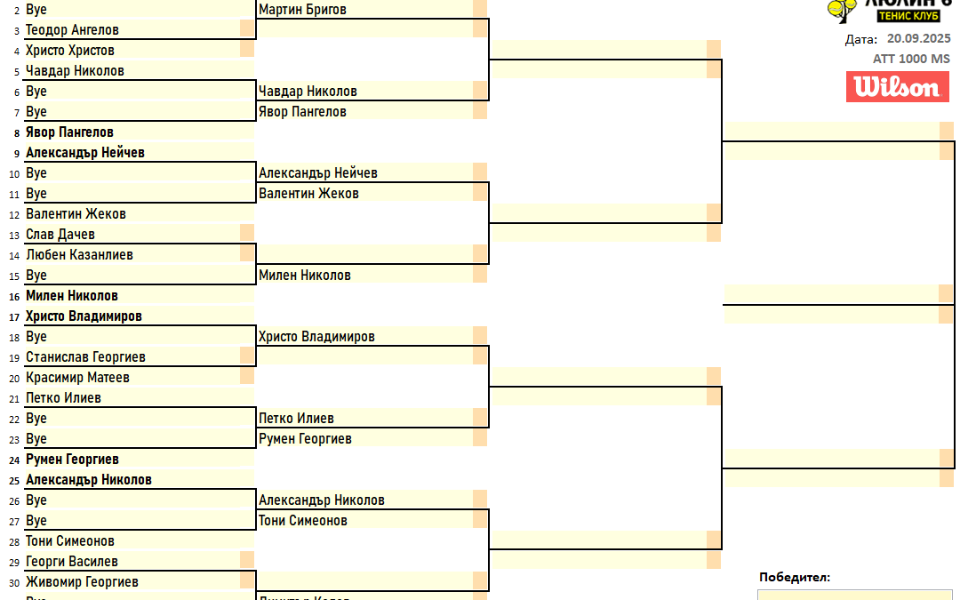 Любителски турнир сингъл ATT 1000 и ATT 250 20.09.2025г